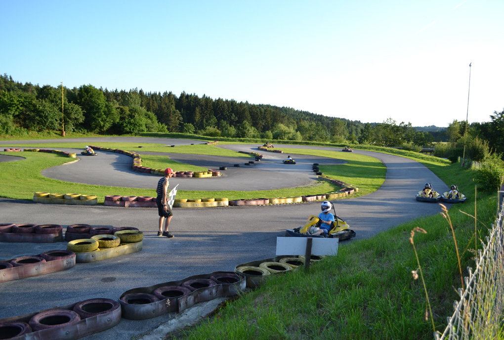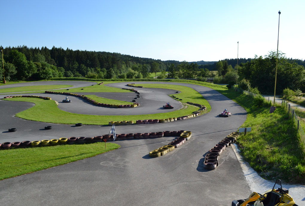 Sie erwartet eine Kartbahn mit tollen Extras für alle... vom Anfänger bis zum Profi! Schnelle Piste mit Steigungs- und Gefälleteilen, 600 m lang, eine 210°-Steilkurve, Kiosk und Aussichtsterrasse an der Bahn.